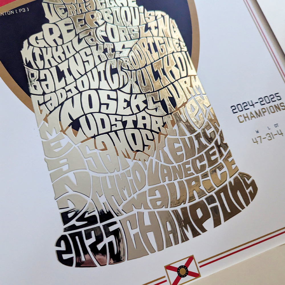 Florida Panthers 2025 Stanley Cup Silver Foil Poster featuring Sam Reinhart, Matthew Tkachuk and the rest of the team. Very limited quantity!