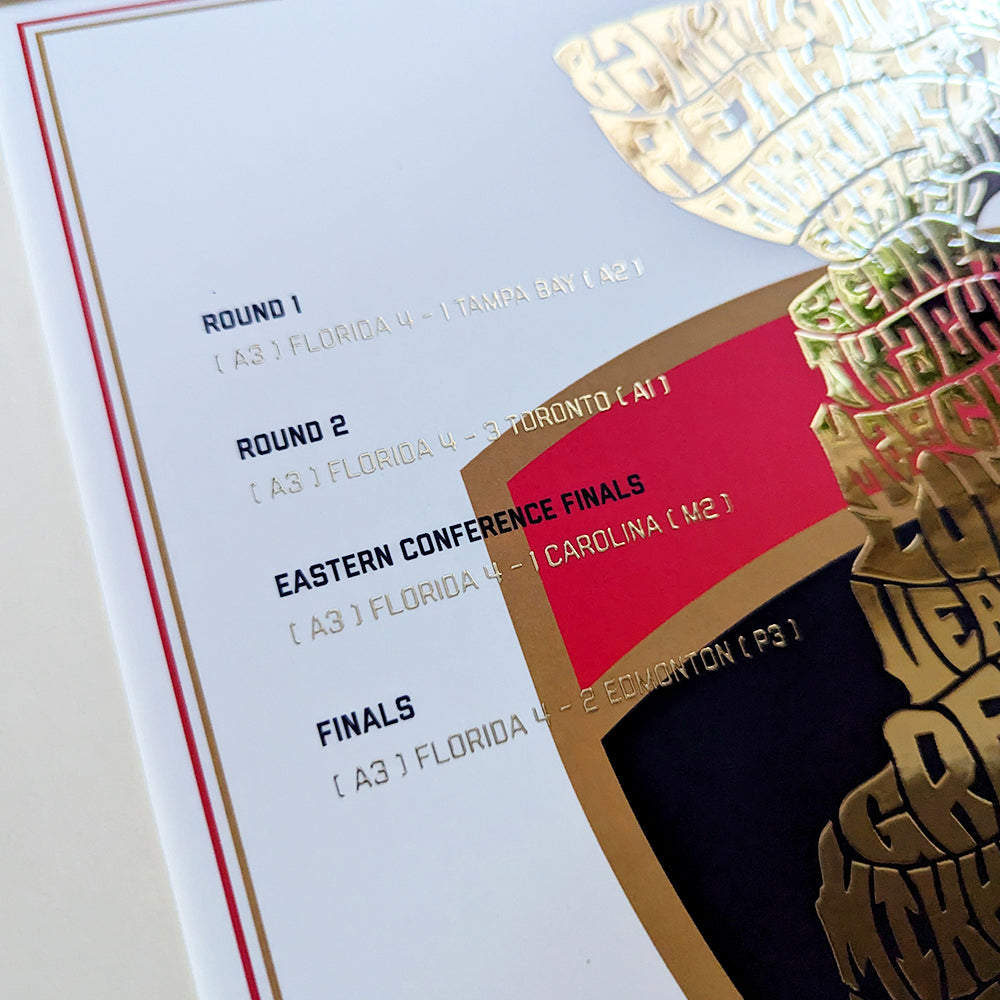 Florida Panthers 2025 Stanley Cup Silver Foil Poster featuring Sam Reinhart, Matthew Tkachuk and the rest of the team. Very limited quantity!